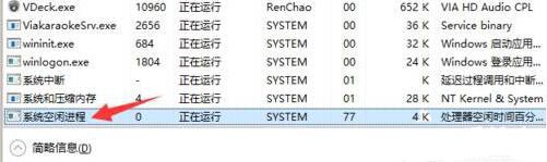 2、但是在Windows 10中,已经翻译为中文了,它叫“系统空闲进程”。如图所示: